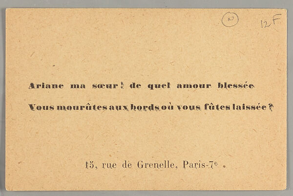 - Title: Ariane ma sœur! de quel amour blessée : vous mourûtes aux bords où vous fûtes laissée?