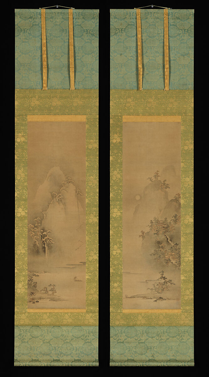 - Medium: Diptych of hanging scrolls; ink and color on paper