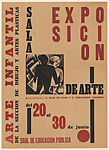 Poster advertising an exhibition of children's art at the exhibition rooms of the Secretaria de Educación Publica; an image of two children in the centre