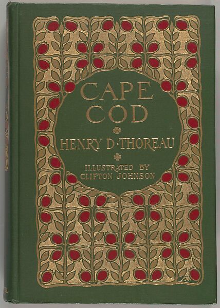 Green cloth with symmetrical design stamped in gold and red. Spine design and titles reflect those of the cover. Signed by Margaret Armstrong (MA in bottom right corner).