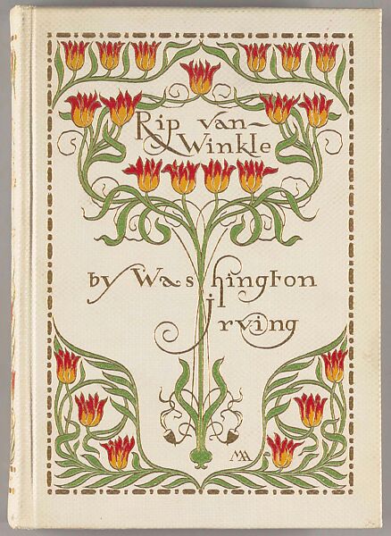 "Designed to be sold both as a set as well as individually, the books ["Legend of Sleepy Hollow" and "Rip Van Winkle"] do not have volume markings. Rip Van Winkle: pp. v; 115; 7 plates. Legend of Sleepy Hollow: pp. v; 191; 8 plates. Signed Margaret Armstrong line block binding design of 21 tulips and titles in gold on dark red buckram with the tulip motif repeated 4 times on the spine with titles (identical design on each volume). Signed Margaret Armstrong title page in each volume, and five different Margaret Armstrong decorative borders in rose and pale green repeated throughout each volume. Each volume contains full page black and white plates by Coburn and vignette illustrations on the verso of each textual page; unsigned illustrated endpapers; top edge gilt. Original ribbon markers laid in. A beautiful set of what Gullans and Espy regarded as "among her [Armstrong's] finest works". This Armstrong masterwork appeared in two cloth variants: red buckram with a line block of the decoration in gold, and white buckram with the design in gold, green, yellow and red. Although the line block of the red variant is of the same design as the white variant, the use of the white cloth and color creates a completely different appearance to the design." -- Austin Abbey Rare Books.