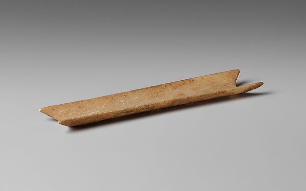 (1) For similar palettes, see Thimme, Jürgen, ed. 1977. Art and Culture of the Cyclades: Handbook of an Ancient Civilisation. pp. 327, 514-15, cat. no. 334, Karlsruhe: C. F. Müller; and a trough-shaped palette found in Tomb 18 at Aplomata in Naxos, see Kontoleon, Nikolaos. 1972. Ανασκαφαί Νάξου, Πρακτικά της εν Αθήναις Αρχαιολογικής Εταιρείας. pl. 139, 2.3.
