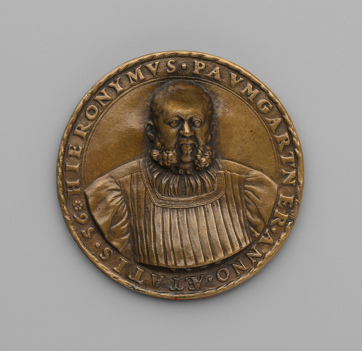 This rare bronze medal by Joachim Deschler (German, active 1540–1569) shows the affluent Hieronymus Paumgartner (1497–1556) who held important offices in the Imperial City of Nuremberg. The medal is dated 1553, the year he was appointed town’s chief counselor. The concentration on the likeness of the human individual was an essential part of Northern European Humanism. Such portrait medals were made across Europe as tokens of identity, to be exchanged among friends or distributed by powerful rulers to the most affluent of their subjects.
