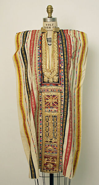 - Medium: Cotton, silk, metal wrapped thread, synthetic; embroidered