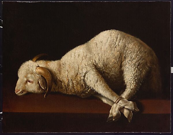 This work of art is currently on loan to the museum.Francisco de Zurbarán transformed what first appears to be a simple still life into a powerful symbol of religious devotion. An innocent lamb tied in preparation for sacrifice represents the body of Christ, described in the Gospel of John as the "Lamb of God" who died in order to "take away the sins of the World." Early collectors, however, equally appreciated Zurbarán’s realism, as indicated by the account of "an art lover in Seville who has a lamb by this maker’s hand, painted from life, which he values more than one hundred living rams." Zurbarán’s innovative treatment of this subject proved successful, and multiple versions are known from the 1630s.