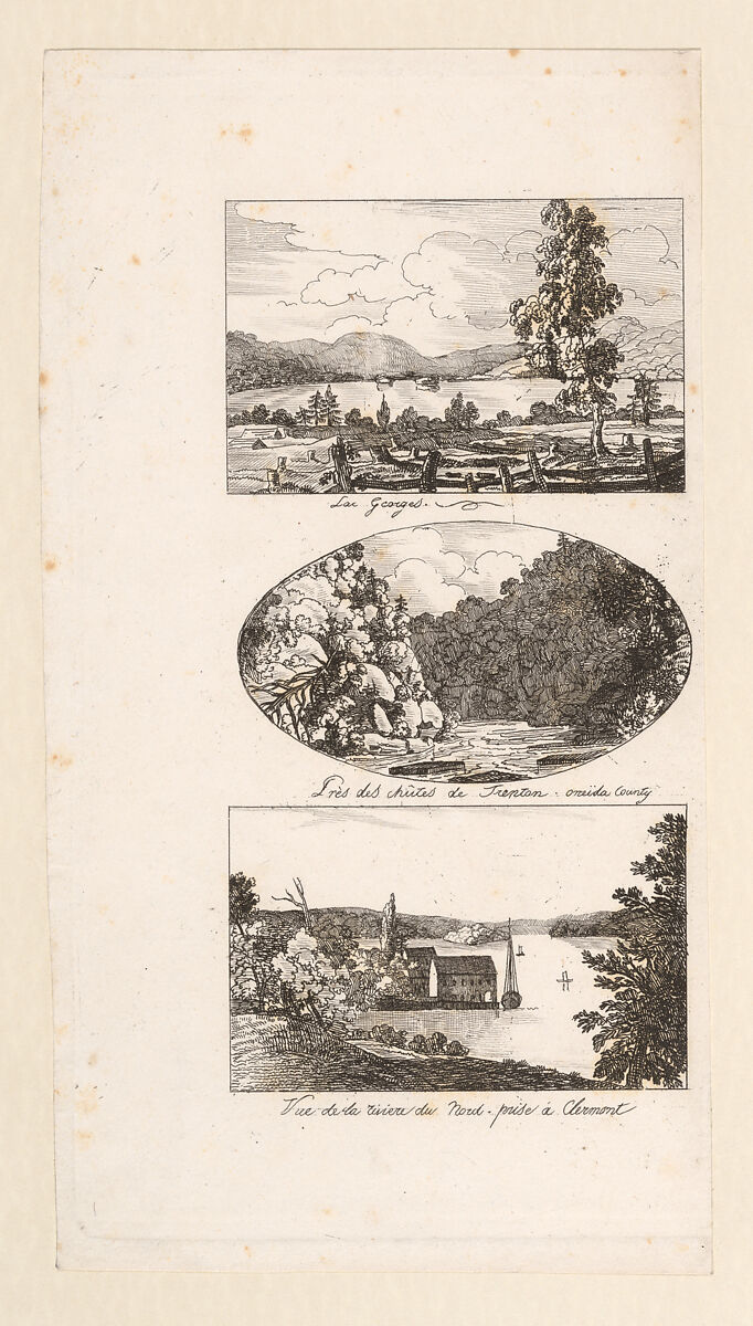 - Title: Vues d'Amerique: Lac Georges; Près des chûtes de Trenton, Oneida County; Vue de la rivière du Nord, prise à Clermont