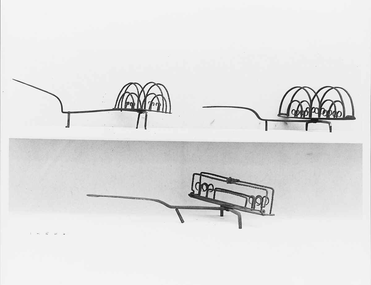 This object was used to toast bread in the open hearth. The sturdy tripod legs raised the bread above the ashes, while the decorative arches on the platform supported pieces of bread of different sizes. The platform could be rotated to toast both sides evenly.