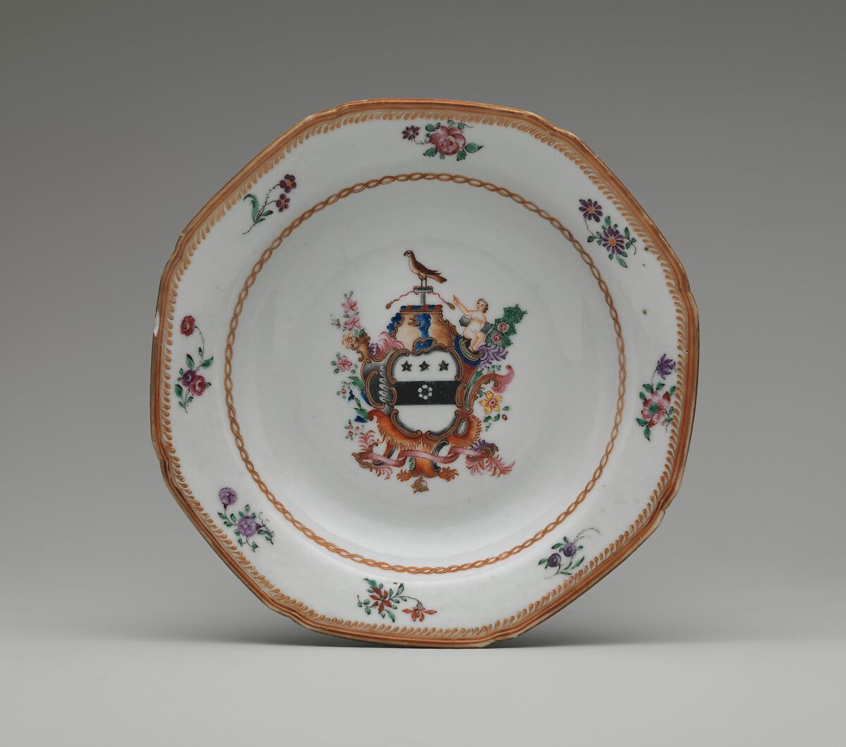 This object belongs to a large dinner service (10.149.1–.248) bearing the Townley family coat-of-arms. The service, probably ordered by Justice Samuel Chase (1741–1811) of Annapolis, Maryland, displays the enamel-painted arms of Margaret Townley, Chase's aunt.