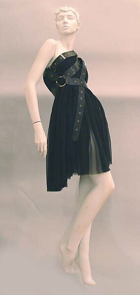 Clements Ribeiro is the partnership of husband and wife Inacio Ribeiro and Suzanne Clements. They are graduates of Saint Martins, the design program that has been the training ground for many of the most influential designers of the last decade. Both their designs and the thematic presentations of their work are characterized by an imaginative mix of narrative allusions and materials. In the design shown here, they play with classical imagery perceived through the lens of a 1950s Hollywood epic. With characteristically subversive intention and wit, they strapped a diaphanous chiffon chiton with a thick metal-eyeleted belt, creating a dress appropriate for a contemporary Amazon.
