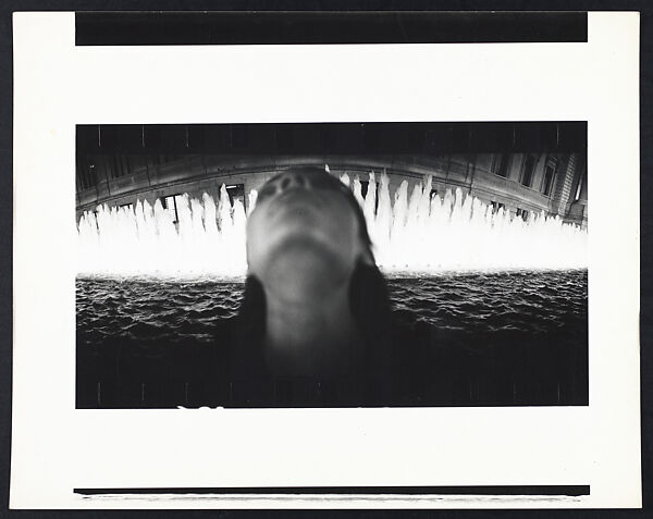 Barboza made this wide-angle, nighttime portrait of the photographer Ming Smith in front of the fountain at The Met soon after she joined Kamoinge around 1973. Seen from below and up close, Smith leans backward toward the fountain jets and appears as if she is rising from the waters like sea serpent. The composition also appears like a human eye with Smith’s head as its iris. The photograph visualizes their close collaboration and celebrates the essence of “Kamoinge” which comes from the language of the Kikuyu people of Kenya, meaning “a group of people acting together.”