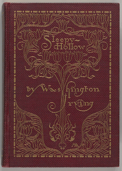 "Designed to be sold both as a set as well as individually, the books ["Legend of Sleepy Hollow" and "Rip Van Winkle"] do not have volume markings. Rip Van Winkle: pp. v; 115; 7 plates. Legend of Sleepy Hollow: pp. v; 191; 8 plates. Signed Margaret Armstrong line block binding design of 21 tulips and titles in gold on dark red buckram with the tulip motif repeated 4 times on the spine with titles (identical design on each volume). Signed Margaret Armstrong title page in each volume, and five different Margaret Armstrong decorative borders in rose and pale green repeated throughout each volume. Each volume contains full page black and white plates by Coburn and vignette illustrations on the verso of each textual page; unsigned illustrated endpapers; top edge gilt. Original ribbon markers laid in. A beautiful set of what Gullans and Espy regarded as "among her [Armstrong's] finest works". This Armstrong masterwork appeared in two cloth variants: red buckram with a line block of the decoration in gold, and white buckram with the design in gold, green, yellow and red. Although the line block of the red variant is of the same design as the white variant, the use of the white cloth and color creates a completely different appearance to the design." -- Austin Abbey Rare Books.