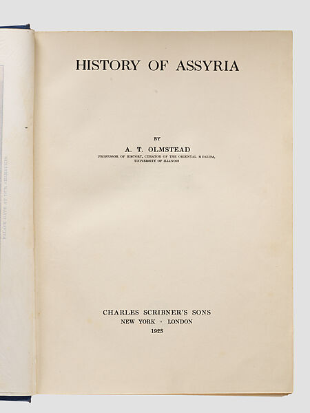 A. T. Olmstead was Professor of Oriental History at the Oriental Institute (today’s Institute for the Study of Ancient Cultures, West Asia and North Africa) of the University of Chicago, one of the main American centers for the study of ancient West Asia. This book is his synthesis of Assyrian history as understood in the early 1920s. One notable feature of the work is Olmstead’s desire to distinguish the particular history and culture of Assyria, in northern Iraq, from that of its southern neighbor, Babylonia: the two shared many cultural and religious features and used different dialects of the same main language, Akkadian, and so had generally been treated together by historians. By Olmstead’s time such disentangling was possible: Akkadian was deciphered in the 1850s, and since that time a combination of archaeology and translation of ancient texts had radically increased modern knowledge of ancient Mesopotamia.