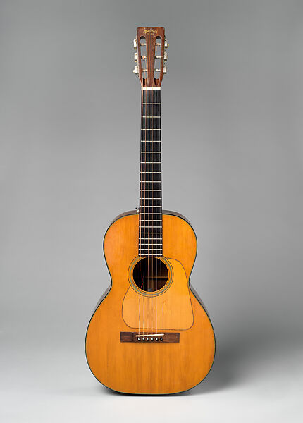 Peter Yarrow was a member of the folk trio Peter, Paul and Mary. He used this guitar for performances and recordings of the group in 1961 and 1962. The guitar was used on the entirety of their debut album Peter, Paul and Mary released in 1962. This steel-strung Martin guitar, paired with Noel Paul Stookey’s nylon-strung guitar, was a key component of the group’s famed sound. This guitar was used on songs from the album including their first hit "Lemon Tree," as well as the song "500 Miles," and their rendition of Pete Seeger’s, "Where Have All the Flowers Gone." The album also included another Seeger song, "If I Had a Hammer," which garnered the trio two Grammy Awards for the Best Folk Recording and Best Performance by a Vocal Group. The cover of that iconic album features the trio standing in front of a brick wall at the New York City music venue The Bitter End. In that photo, Yarrow stands holding his guitar and Stookey holds his nylon-strung Martin guitar, both of which are now a part of the collection of The Metropolitan Museum.