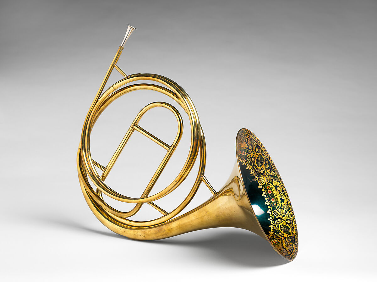 - Medium: horn: brass, white metal, polychrome; case: wood, paper, iron, chamois leather, paint