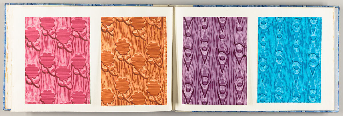 Comprehensive instructional book on paste papers which are made by applying brushes and hand tools to the surface of paper already coated with a colored, wet paste. Specimens executed by the author on W. S. Hodgkinson's handmade paper; bound in quarter vellum and blue paste paper with Bird & Bull design.