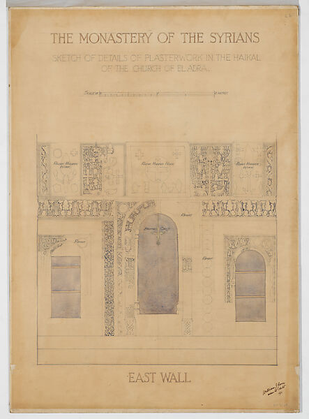 - Title: The Monastery of the Syrians, Sketch of Details of Plasterwork in the Haikal of the Church of El Adra, East Wall