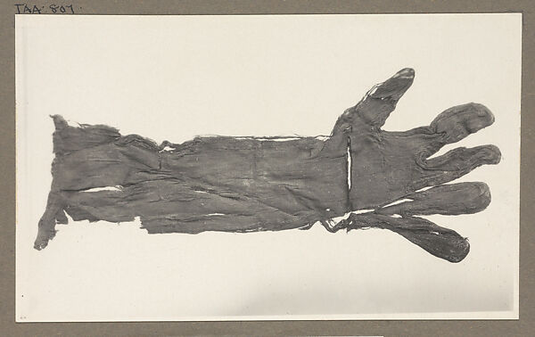Within the tomb of Tutankhamun were many boxes of folded clothing. It came in various sizes, as illustrated by the child-size glove here and the intricate adult-size one shown in photograph TAA 821. The garments found in the tomb are items he probably owned and may have worn during his life.