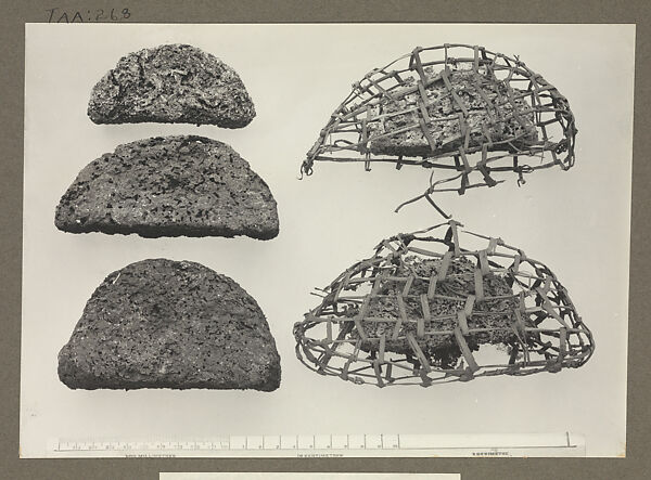 Food and drink were considered essential for the ancient Egyptian afterlife, and food items were deposited in the tombs of royals and nonroyals alike. Among the actual foodstuffs in Tutankhamun’s tomb were semicircular bread loaves containing fruit from the Christ’s-thorn plant. Some loaves were put into netlike structures made of rushes that may have been a type of holder, though their purpose is not fully understood.