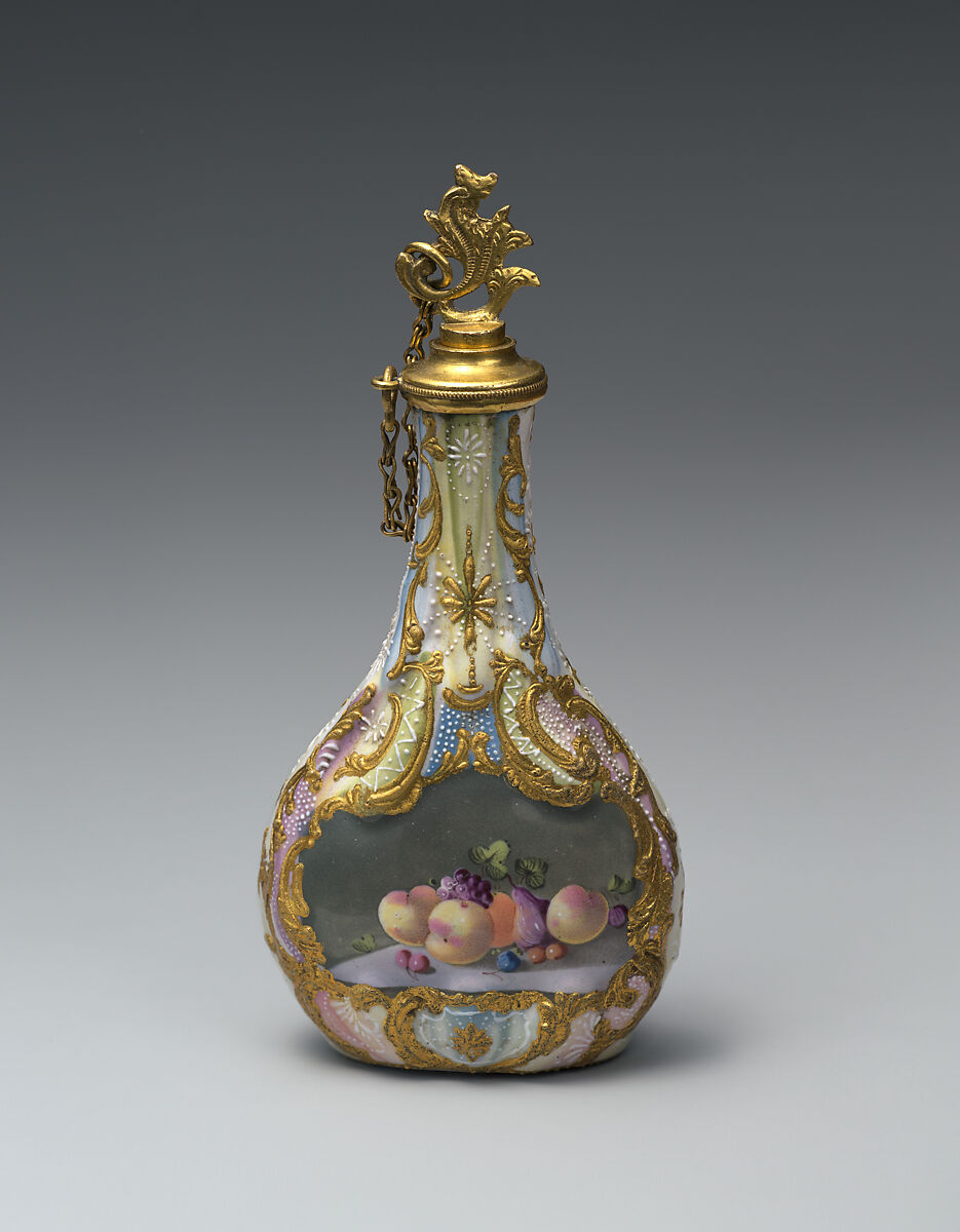 Small enough to carry in a pocket or attach to a belt, scent bottles (or smelling bottles, as they were referred to in the eighteenth century) held perfumes that could be sniffed throughout the day, either directly from the bottle or when applied to a handkerchief. Strong odors were primarily thought to help govern disordered emotions, though smelling bottles were advertised as a solution to a variety of ailments. As one scent bottle salesman put it in 1785, "Considering the many sudden Disorders we are liable to, no one is really safe without it."