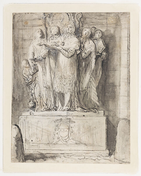 - Medium: Pen and black and gray ink, brush and gray wash, over black chalk