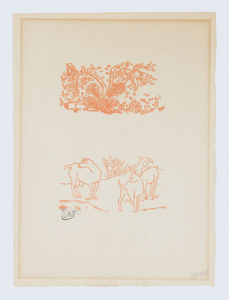 - Title: Two Vignettes: Tree with Brush and Three Goats