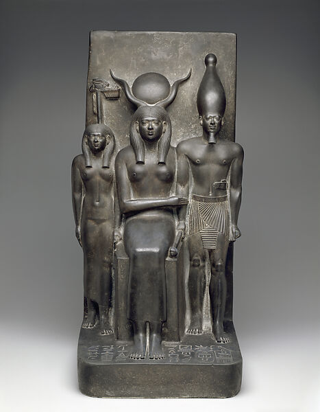 - Title: Triad statue of Hathor seated between King Menkaure and a personification of the Hare Nome