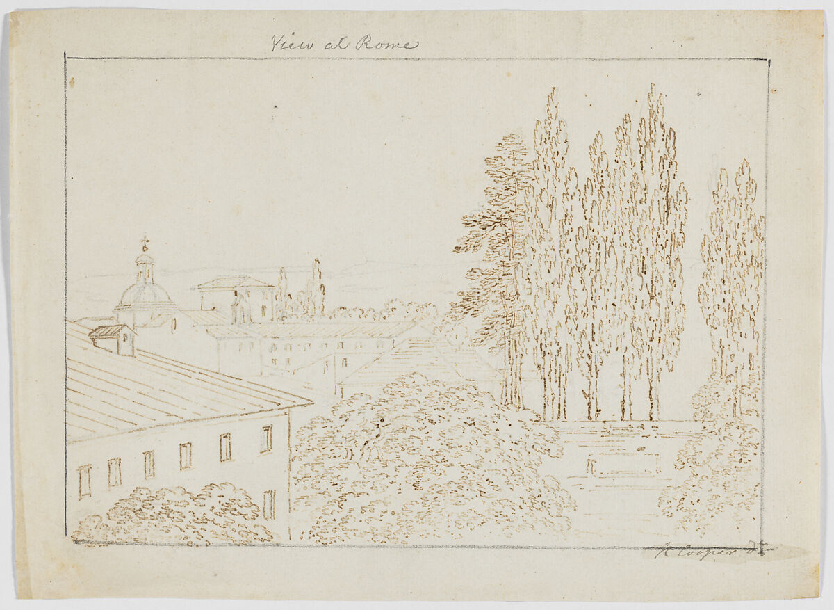 Born in Edinburgh, Cooper II trained as an engraver under his father, then studied in Paris with Jacques Philippe le Bas (1707-1783). He made these drawings during a visit to Italy in 1771-76 and, until recently, they were preserved in an album that descended in the family. Interestingly, each composition relates closely to a drawing in a sketchbook that Joseph Wright of Derby (1734–1797) used in Rome in 1774-75 (57.102.1(1-44)). These visual links suggest that the two artists sketched together and possibly took it in turns to use an optical instrument. While the outlines of the related compositions are close, each was then developed in markedly different ways. This drawing relates to Wright's sketchbook page 57.102.1(6).