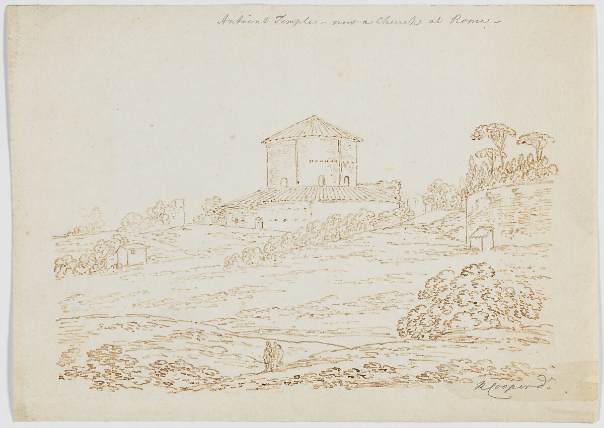 Born in Edinburgh, Cooper II trained as an engraver under his father, then studied in Paris with Jacques Philippe le Bas (1707-1783). He made these drawings during a visit to Italy in 1771-76 and, until recently, they were preserved in an album that descended in the family. Interestingly, each composition relates closely to a drawing in a sketchbook that Joseph Wright of Derby (1734–1797) used in Rome in 1774-75 (57.102.1(1-44)). These visual links suggest that the two artists sketched together and possibly took it in turns to use an optical instrument. While the outlines of the related compositions are close, each was then developed in markedly different ways. This drawing relates to Wright's sketchbook page 57.102.1(4).
