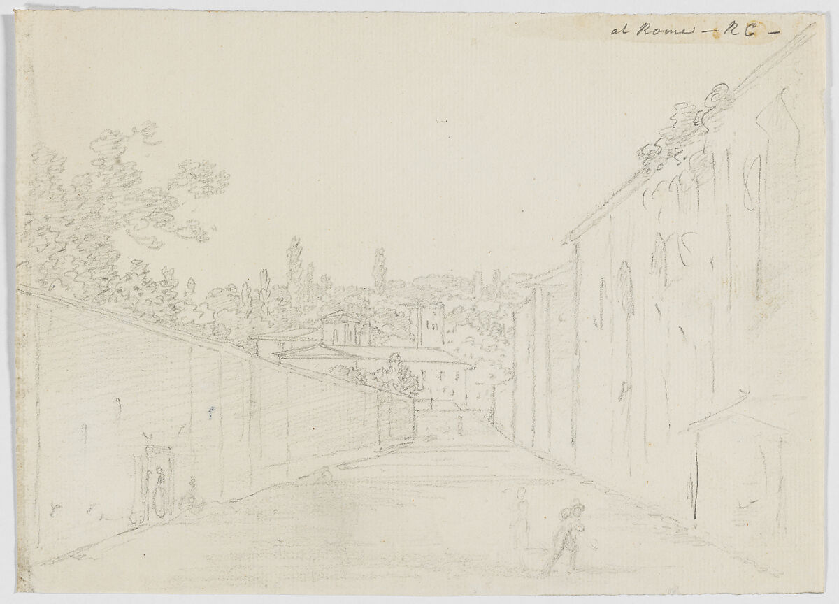 Born in Edinburgh, Cooper II trained as an engraver under his father, then studied in Paris with Jacques Philippe le Bas (1707-1783). He made these drawings during a visit to Italy in 1771-76 and, until recently, they were preserved in an album that descended in the family. Interestingly, each composition relates closely to a drawing in a sketchbook that Joseph Wright of Derby (1734–1797) used in Rome in 1774-75 (57.102.1(1-44)). These visual links suggest that the two artists sketched together and possibly took it in turns to use an optical instrument. While the outlines of the related compositions are close, each was then developed in markedly different ways. This drawing relates to Wright's sketchbook page 57.102.1(7).