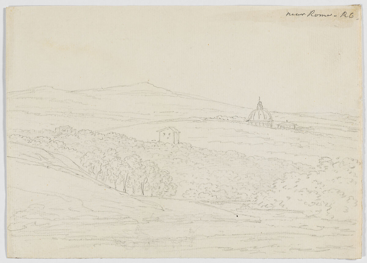 Born in Edinburgh, Cooper II trained as an engraver under his father, then studied in Paris with Jacques Philippe le Bas (1707-1783). He made these drawings during a visit to Italy in 1771-76 and, until recently, they were preserved in an album that descended in the family. Interestingly, each composition relates closely to a drawing in a sketchbook that Joseph Wright of Derby (1734–1797) used in Rome in 1774-75 (57.102.1(1-44)). These visual links suggest that the two artists sketched together and possibly took it in turns to use an optical instrument. While the outlines of the related compositions are close, each was then developed in markedly different ways. This drawing relates to Wright's sketchbook page 57.102.1(32).