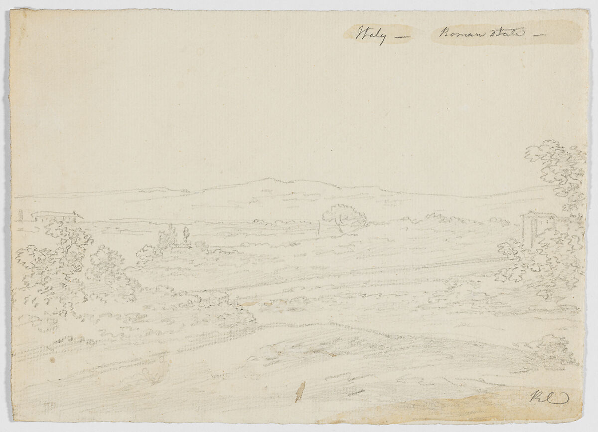 Born in Edinburgh, Cooper II trained as an engraver under his father, then studied in Paris with Jacques Philippe le Bas (1707-1783). He made these drawings during a visit to Italy in 1771-76 and, until recently, they were preserved in an album that descended in the family. Interestingly, each composition relates closely to a drawing in a sketchbook that Joseph Wright of Derby (1734–1797) used in Rome in 1774-75 (57.102.1(1-44)). These visual links suggest that the two artists sketched together and possibly took it in turns to use an optical instrument. While the outlines of the related compositions are close, each was then developed in markedly different ways. This drawing relates to Wright's sketchbook page 57.102.1(28).