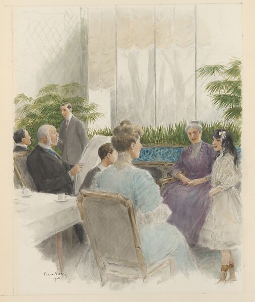 Henri Béraldi, the great collector and scholar of eighteenth-century French prints and drawings, commissioned his friend Marie-Louis Pierre Vidal to create this series of seventy watercolors, which Vidal executed between 1900 and 1913. Beraldi and Vidal's work depicts a detailed pictorial record of the daily life in Belle Époque Paris. Inspired by the celebrated Monument du Costume of the late eighteenth century, which showcased illustrations by Sigmond Freudeberg and Moreau le Jeune, Béraldi planned to publish Vidal's images in an édition de luxe. The outbreak of World War I, in 1914, put a halt to the project and the drawings were organized in three portfolios, instead, which is how they remain up to this day.