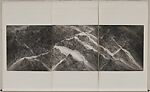 Considered one of the most important painters in postwar Hong Kong, Wucius Wong was active in New York’s Chinese American artistic circle in the 1980s and 1990s. Reminiscing about a River is typical of Wong’s style of this period, when he made ink landscapes set within geometric structures. The painting depicts a sprawling mountainous landscape from an aerial view with winding rivers and streams creating depth and movement. Borrowing a concept from Wong’s early career as a graphic designer, the crisscrossing structure that divides each panel into quadrants draws the eye to the painting surface. For Wong, design elements such as this modernize ink painting’s perspectival orientations. Using brushwork and layers of ink wash in various densities, Wong achieves dramatic light contrasts and atmospheric effects that reflect a wide range of art historical influences from Rembrandt’s and Caravaggio’s treatment of light to J. M. W. Turner’s romantic landscape, and Northern Song monumental landscape painting.