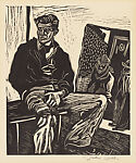 In this linocut, Heller depicted Pablo Esteban O’Higgins (whose work is on display nearby), an American-born artist who relocated to Mexico at the age of twenty. There, O’Higgins cofounded the Taller de Gráfica Popular, the progressive printmaking workshop where many of the artists on view here produced prints. Heller, a visiting artist in 1947, showed O’Higgins seated in a space, likely a studio, with art propped against the wall. Related to the woodcut, the linocut was popular with workshop artists. Linoleum was an inexpensive synthetic material that was easier to carve than wood and allowed for a greater variety of effects; its strength enabled artists to pull a large number of prints without compromising quality. The resultant works could then be sold at prices that reflected the artists’ aspirations for a more democratic and financially accessible art.
