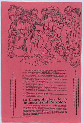 The exploitation of those who worked the land was often addressed by Mexican printmakers during the first half of the twentieth century. Fluctuating and inflated prices in particular were a concern. Here, a group of figures with grotesque faces oppress Indigenous farmers. The man at right points to a sign that reads "Corn $10 a kilo," revealing the profits that this greedy collective amassed by inflating the price of corn, a staple of the Mexican diet.