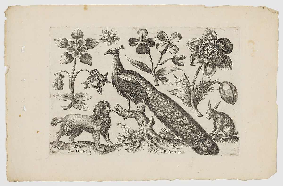 - Title: Peacock with Dog, Rabbit and Flowers