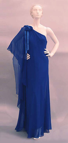 Jules-François Crahay was the master of flou, or soft dressmaking. This gown is an example of his predilection for "the bias, the loose drapery, and the floating effect." Even the finishing of the shoulder with a satin-ribbon tie is a signature of the designer, known for his "softly knotted" dresses. The House of Lanvin was originally associated with the romantically feminine styles of its eponymous founder, Jeanne Lanvin. With Crahay, the house emphasized designs that sought to enhance the personal style of the client. The flattering effect of this classical gown conforms to the Crahay's belief in garments that express the natural grace and individuality of the wearer over the caprice of the designer.