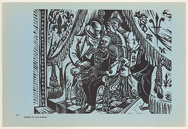- Title: With Díaz reaction returns to power (Con Diaz, la reaccion vuelve al poder), Plate 35 from "450 Años de Lucha: Homenaje al Pueblo Mexicano" (450 Years of Struggle: Homage to the Mexican People)