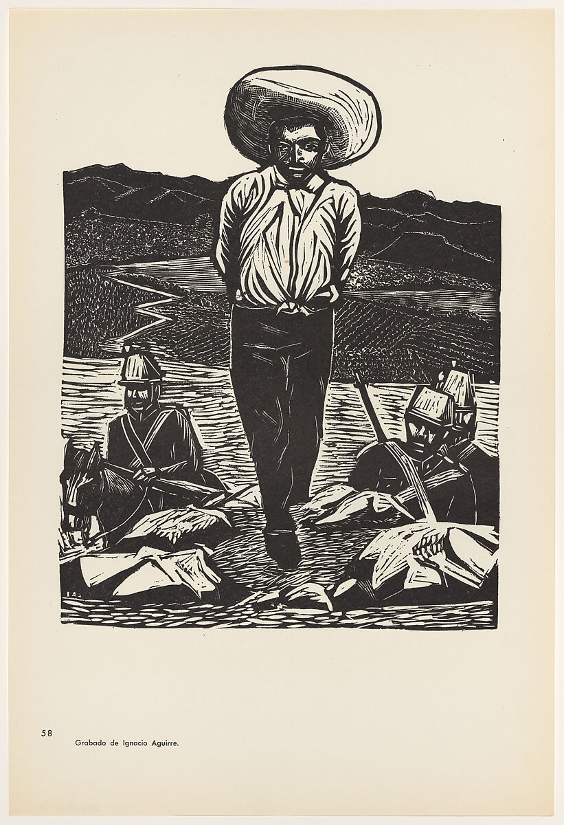 Emiliano Zapata taken prisoner in response to his fight for the rights of campesinos (Emiliano Zapata hecho prisionero en su lucha en favor de los campesinos, 1908), Plate 58 from "450 Años de Lucha: Homenaje al Pueblo Mexicano" (450 Years of Struggle: Homage to the Mexican People)