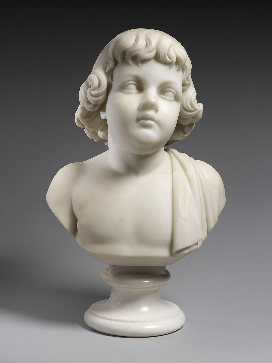 Emma Stebbins modeled and carved this portrait bust of her nephew John Neal Tilton (1860-1921) when both sculptor and subject were based in Rome, Italy, in the mid-1860s. Tilton’s cherubic features are also featured in Samuel (ca. 1865-66), a full-length representation of the Old Testament prophet as a youth, and in the four subsidiary figures representing temperance, purity, health, and peace for her best-known work, Angel of the Waters for the Bethesda Fountain, unveiled in Central Park in 1873, the first New York City public art commission awarded to a woman. During the 1850s and 1860s, Stebbins and her life partner, the actor Charlotte Cushman, were central figures in Rome’s expatriate cultural community. She created small-scale marbles for domestic decoration, including this appealing representation of youthful innocence, as well as public sculptures for New York and Boston.