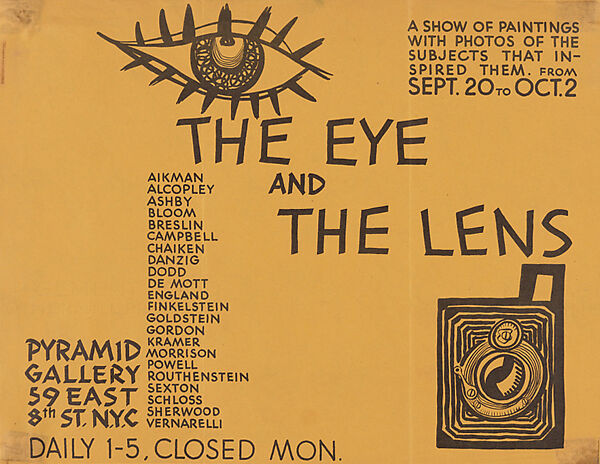 - Title: The Eye and the Lens exhibition announcement, ca. 1947–49, modern reproduction, Pyramid Gallery, New York