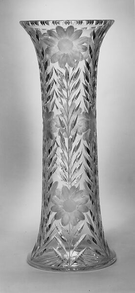 The glass factories founded by Alsatian émigré Christian Dorflinger were arguably among the most significant glass factories in operation from the mid to late nineteenth century. His first factory was in Brooklyn, New York, from which he relocated his operations to White Mills, Pennsylvania, where this object was made. This tall vase embellished with cut designs of flowers, stems, and leaves, represents the fine quality of glass and accomplished cutting for which they were renowned. It descended in the family of Christian Dorflinger.