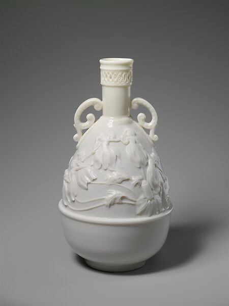 Walter Scott Lenox left Willets in 1889 to found the Ceramic Art Company, later Lenox China. Production of art porcelain was the company’s sole aim. In a departure from the firm’s characteristic decoration in enamels and raised gold paste, the decorator Kate Sears, about whom little is known, painstakingly carved delicate vignettes on the sides of porcelain vessels such as this vase, with its nymphs in petal skirts personifying flowers.