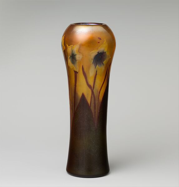 This object forms part of a group of glass vessels and enamel containers Louis Comfort Tiffany loaned to the Museum in 1925 that were later given to the Museum by the Tiffany Foundation in 1951 (51.121.1–.44). Tiffany originally chose this group of objects to show examples of form, technique, and color that were not represented in the 1896 Havemeyer gift (96.17.9–.56). The mark on the underside of this vase, A - coll, indicates that this object was once a part of Tiffany’s private collection. Less than 250 objects are so marked.