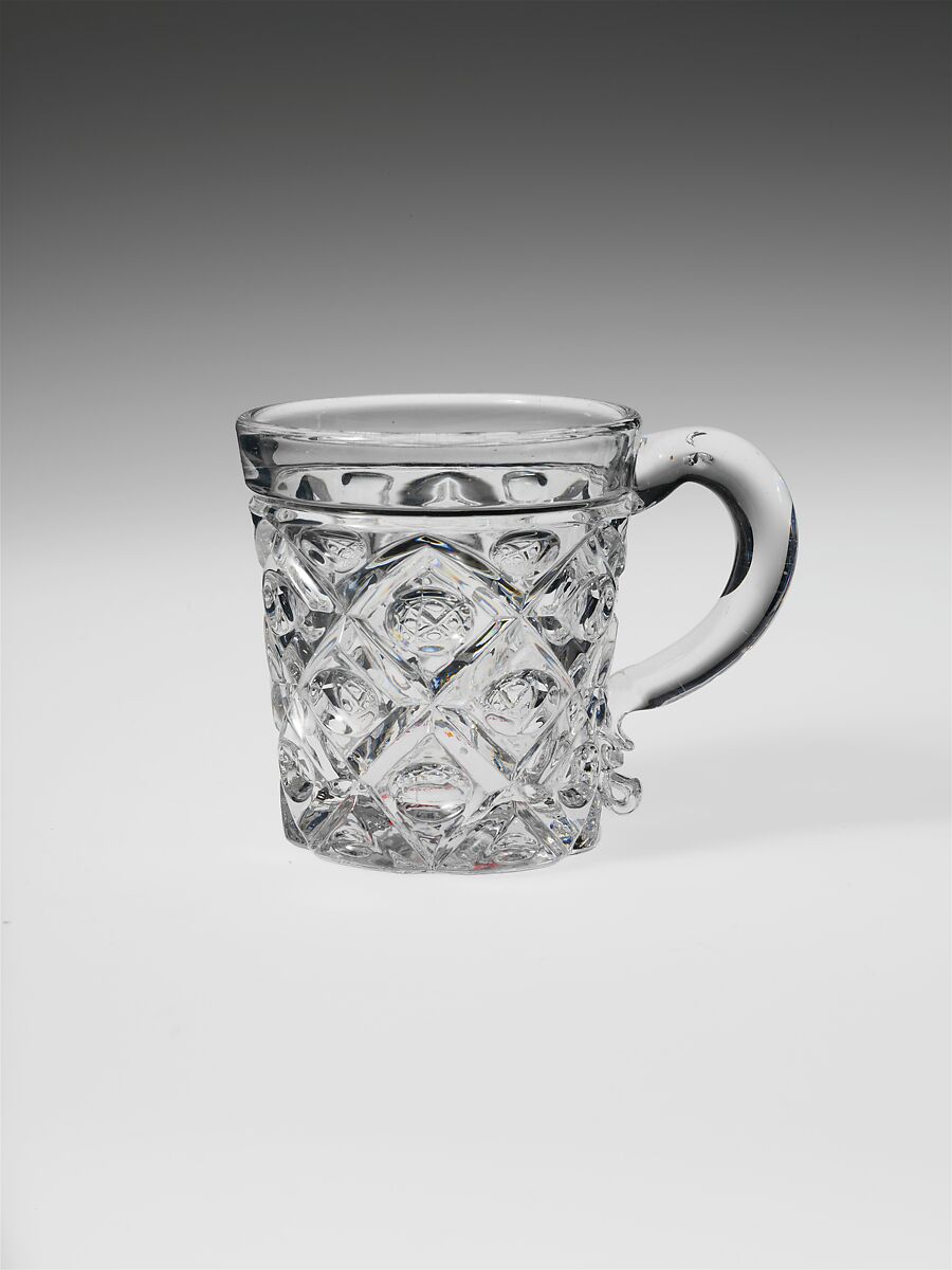 With the development of new formulas and techniques, glass-pressing technology had improved markedly by the late 1840s. By this time, pressed tablewares were being produced in large matching sets and innumerable forms. During the mid-1850s, colorless glass and simple geometric patterns dominated. Catering to the demand for moderately-priced dining wares, the glass industry in the United States expanded widely, and numerous factories supplied less expensive pressed glassware to the growing market. At the Exhibition of the Industry of All Nations at New York’s Crystal Palace in 1853, for example, the New England Glass Company exhibited 130 pieces of one design, "consisting of bowls, tumblers, champagnes, wines, and jelly glasses." This object belongs to one such service. Although the glass manufactory is not known, the glassware is very typical of the large services that were very popular with America’s middle class in the nineteenth century.
