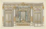 Design for a Canape with Red Upholstery against a Yellow Marbled Backdrop for Harold Brown Esq. (RI)
