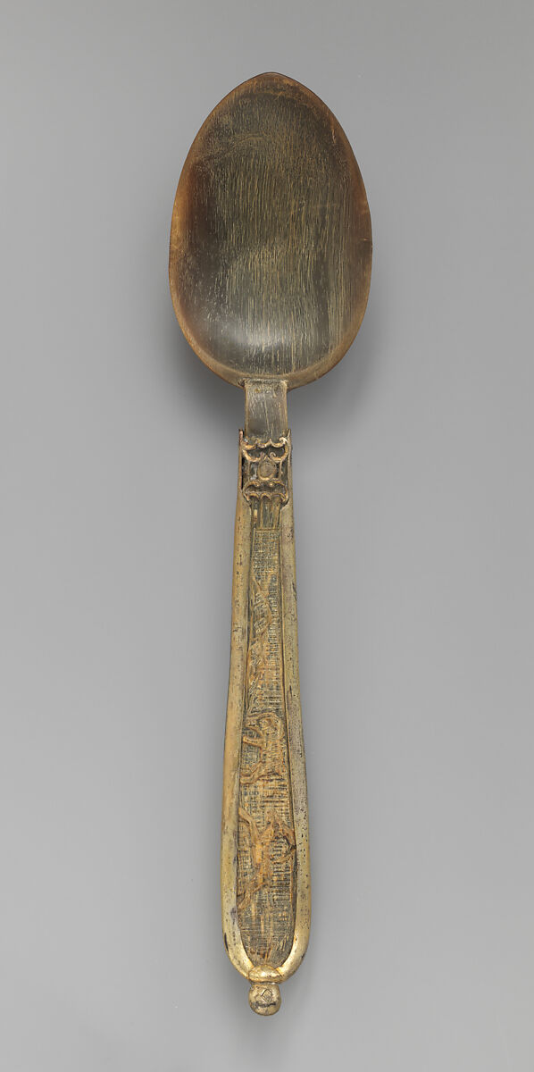 - Medium: Horn (probably ibex [steinbock]), pearl and gilt-brass