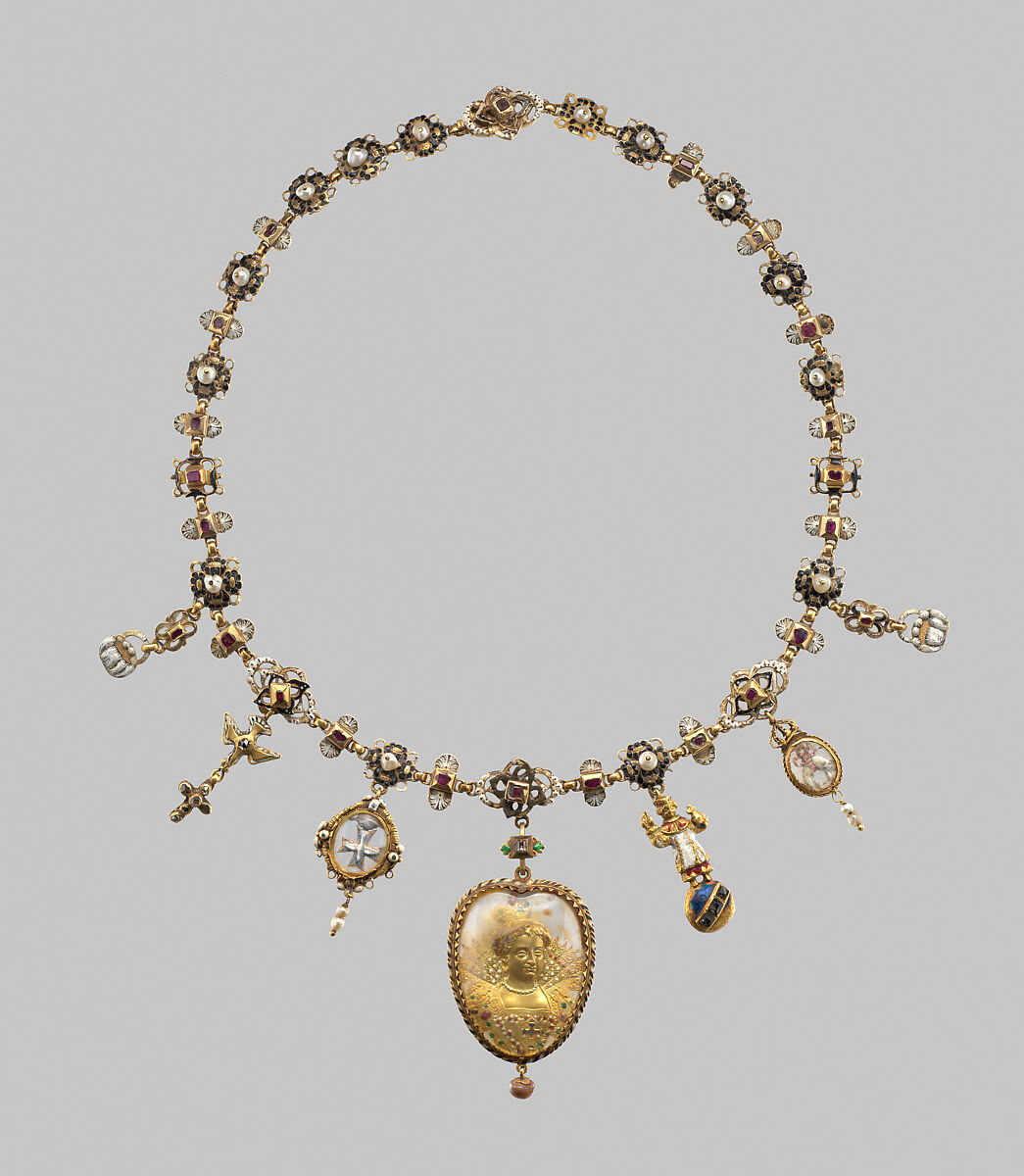 - Medium: Gold, enamel, rubies, pearls, amethysts, topaz, diamonds