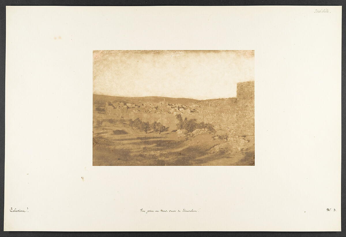 Maxime Du Camp's mission to Egypt and the Near East in 1849-51 to make a photographic survey of monuments and sites is well documented in his writings and in those of his fellow traveler, Gustave Flaubert. After an initial stay in Cairo, the two friends hired a boat to take them up the Nile as far as the second cataract, after which they descended the river at leisure, exploring the archaeological sites along its banks. In July 1850 they left Egypt for Palestine, Turkey, and Greece before they parted in Italy the following April. Du Camp's album "Egypte, Nubie, Palestine et Syrie," published in 1852 and containing 125 photographs printed by Blanquart-Evrard, brought its author instant fame. In addition to the published edition, Du Camp arranged for a private printing of a few portfolios, such as the one in the Gilman collection, which numbers 174 images particularly noteworthy for their warm color and luminescence. Possibly printed in Gustave Le Gray's studio, the present portfolio is