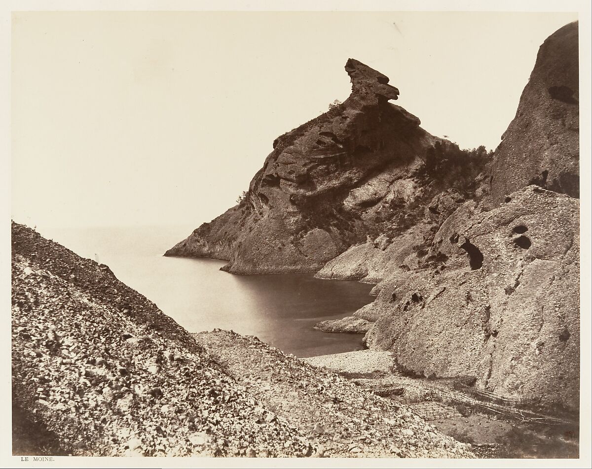 Baldus's greatest commercial success came from his straightforward views of historic monuments and modern architectural and engineering projects. While seeking out features of the landscape that possess the same monumental presence as a Gothic cathedral or Roman aqueduct, he nonetheless brought a more lyrical sensibility to the depiction of the natural world. This view of a rock formation along the Côte d'Azur was among the final images in an album that Baldus produced for the Paris-Lyon-Méditerranée Railroad showing the route from Lyon to Toulon.